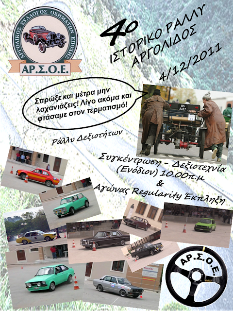 Ο Αργολικός Σύλλογος Οχημάτων Εποχής διοργανώνει την Κυριακή 4 Δεκεμβρίου 2011 το 4ο Ιστορικό Ράλλυ Αργολίδος. Μια δεξιοτεχνία για τους…