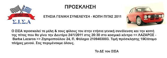Διαβάστε περισσότεραΔΕΛΤΙΟ ΤΥΠΟΥ Η ΦΙΛΠΑ (Φίλοι Παλαιού Αυτοκινήτου) διοργανώνει την Κυριακή 16 Ιανουαρίου 2011στο Καλλιμάρμαρο τον 14ο Γύρο Αθηνών, την εκδήλωση…