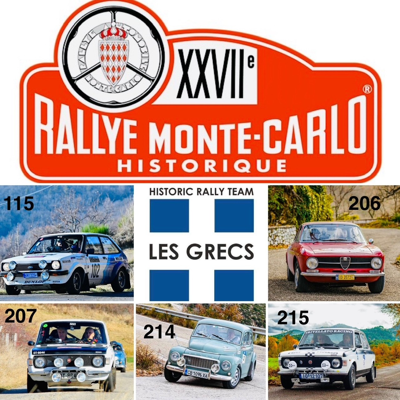Πέντε πληρώματα (τέσσερα ελληνικά και ένα φιλικό «ελληνοποιημένο» από τη Βουλγαρία), συνθέτουν την ομάδα των φετινών «Les Grecs» που θα ξεκινήσει από το Τορίνο την προσπάθειά της για διάκριση στο πριγκιπάτο του Μονακό, λαμβάνοντας μέρος στην 27η έκδοση του διάσημου «Rallye Monte Carlo Historique», από τις 29 Ιανουαρίου ως τις 5 Φεβρουαρίου 2025.